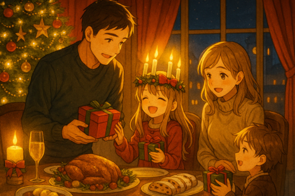 12月24日の夜、家族がひとつのテーブルに集まる。