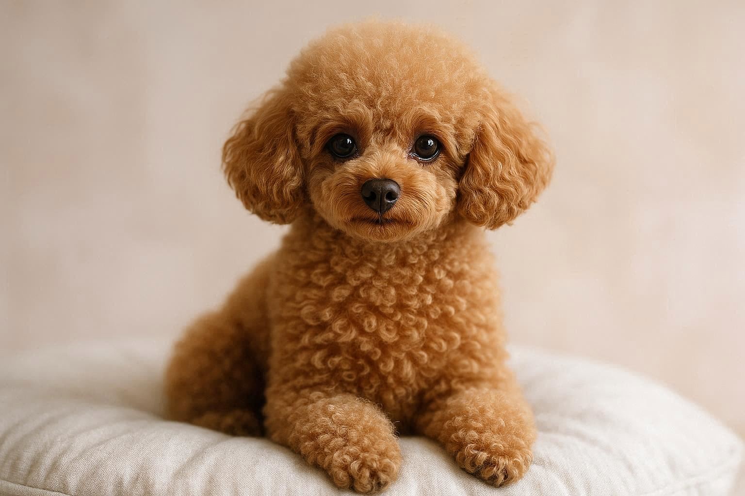 ふわふわの毛並みに、つぶらな瞳。まるでぬいぐるみのようなこのトイプードルは、見ているだけで心がほぐれていくような存在です。