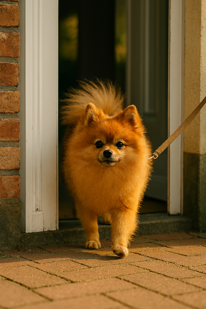 玄関のドアが開くと、ポメちゃんはぴょんっと飛び出した。