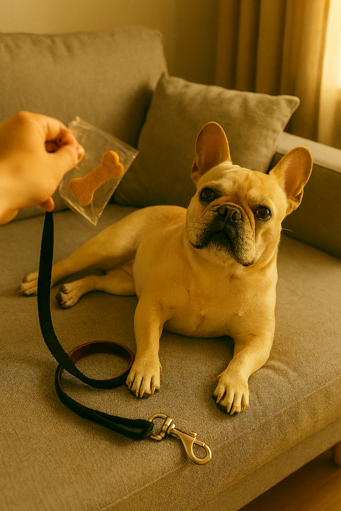 「はやく!はやく!」ってリードを引っ張るフレブルくん。