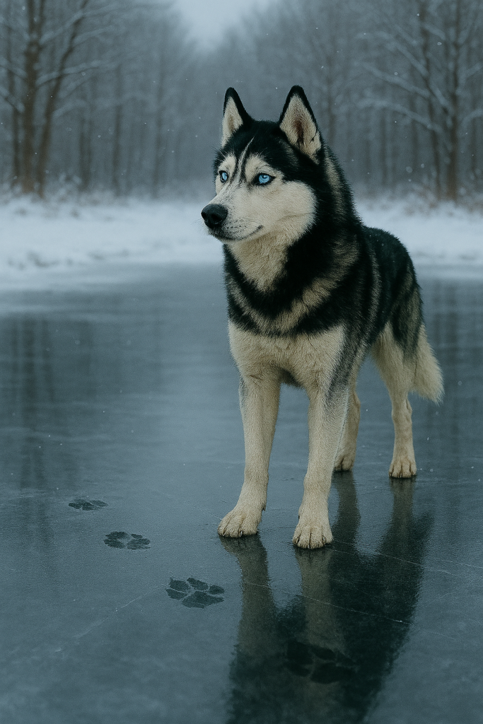 風がまた吹いて、氷の上に雪が舞い落ちる。