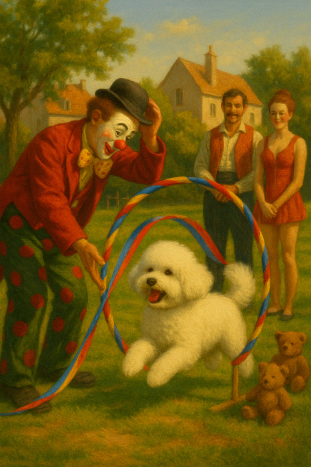ピエロのピエールが、笑顔でアーチを支える。